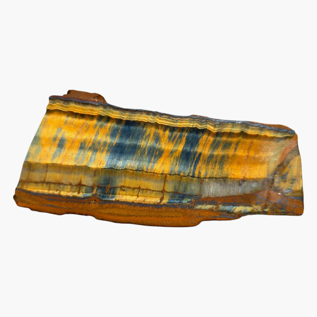 This gorgeous Hawkeye Tiger Eye slab is full of bold, brilliant flash that comes alive when turned under light. It’s from a premium batch—some of the best material we’ve ever cut—and this particular piece has fantastic movement and optical shimmer. It’s the kind of stone that begs to be cabbed, with cabochons sure to turn heads.