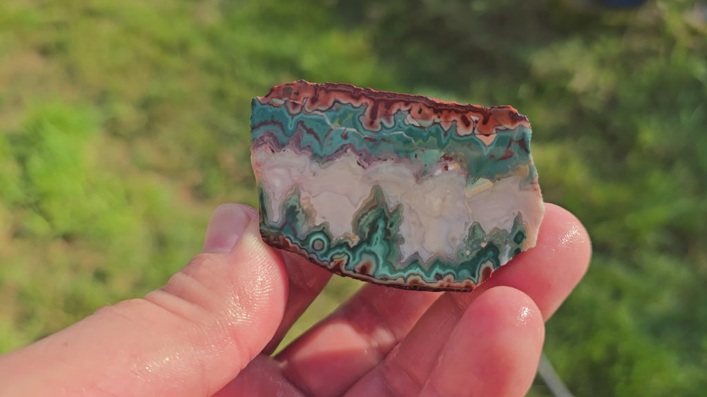 A rare cut and proven Idaho Sunset Jasper trimmer with premium green tones—perfect for cutting, polishing, or display from this no-longer-available deposit.