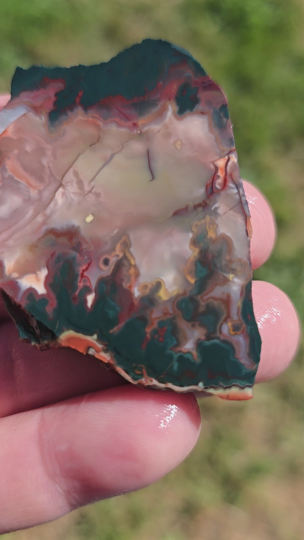 Idaho Sunset Jasper Slab – Gorgeous Green Fire Plumes from Challis, Idaho