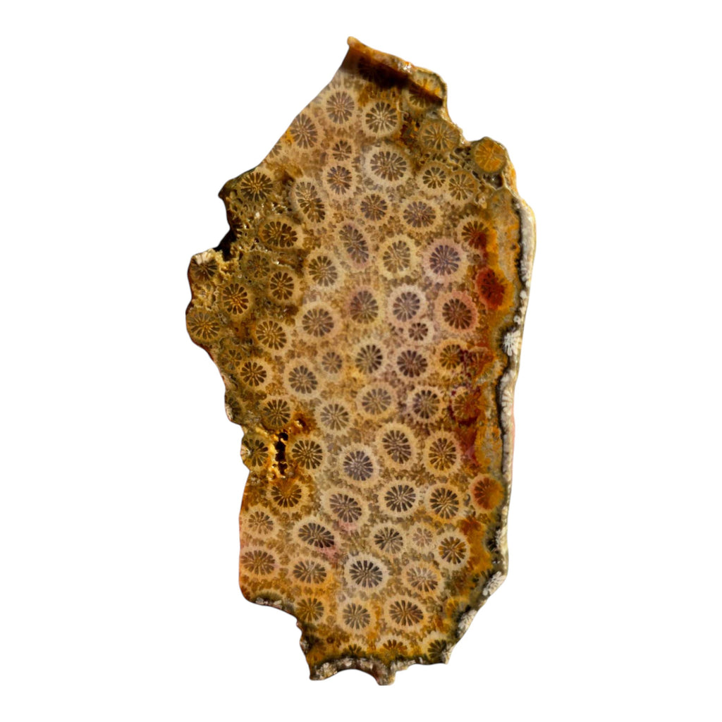 🪸 Indonesian Fossil Coral Slab – Butterscotch with Red Banding