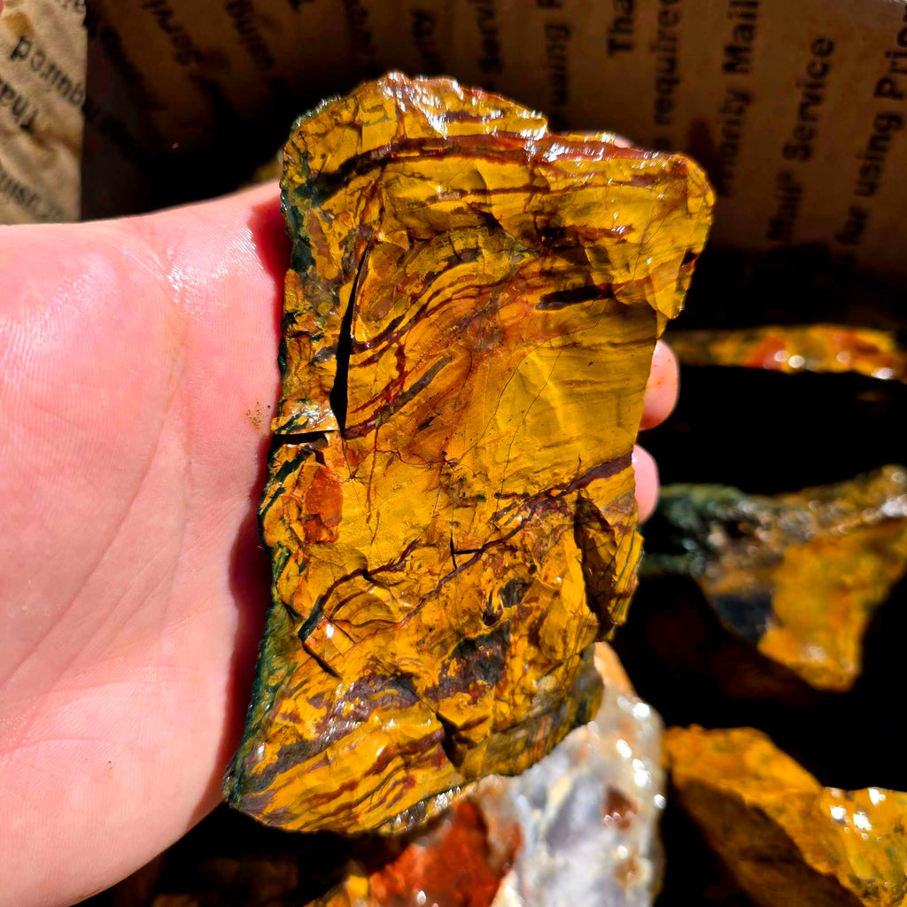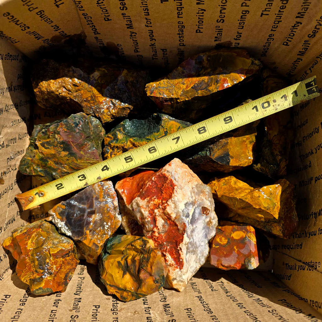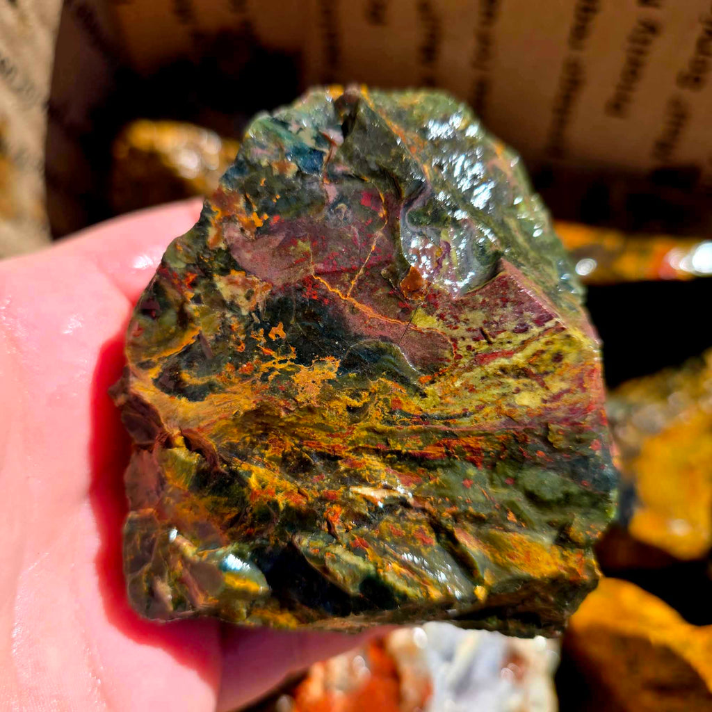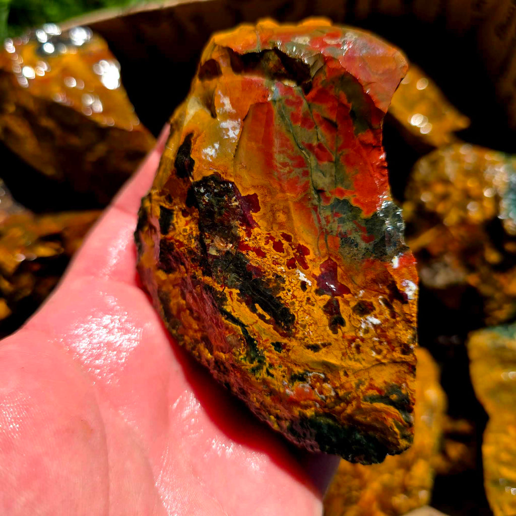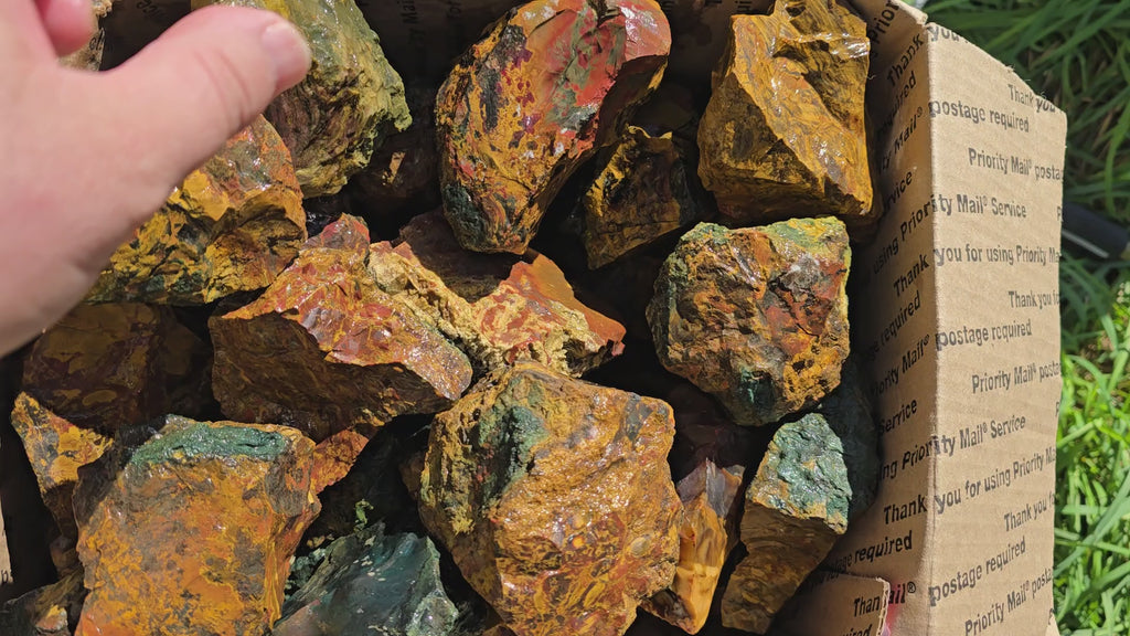 One of the final opportunities to acquire Kaleidoscope Jasper in quantity - a mixed box of rare varieties from an iconic, now depleted Oregon deposit.