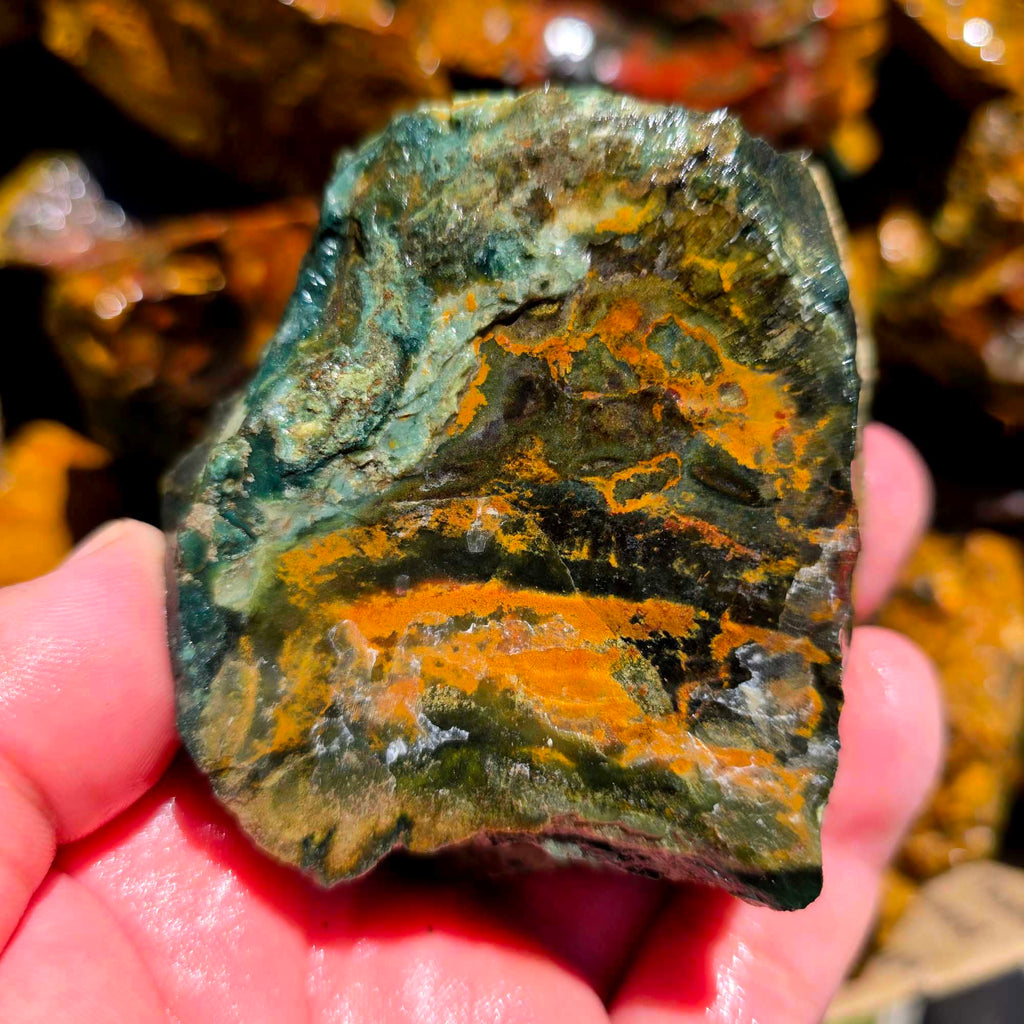 Kaleidoscope Jasper is a rare and visually diverse jasper from Oregon, known for its incredible range of colors, formations, and organic inclusions. Unlike traditional seam or vein jaspers, Kaleidoscope was found in small, isolated pockets, sometimes just feet apart, making it extremely difficult and unproductive to mine. This scarcity contributed to the low volume that ever reached the market.