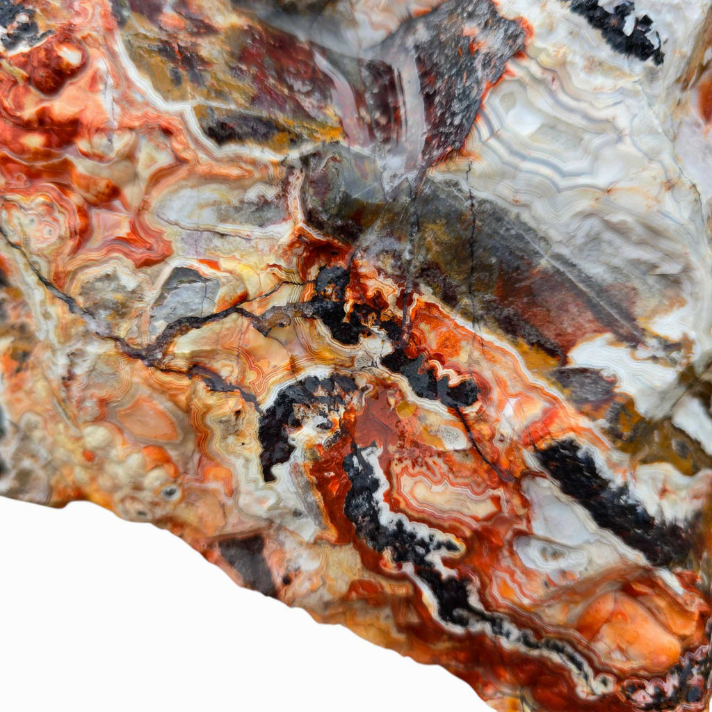 Each slab of Crazy Lace is unique — featuring a mix of reds, yellows, whites, grays, and occasional pinks or blacks in intricate lace formations. It takes an exceptional polish and produces designer-grade cabochons with incredible visual complexity. With so many varieties, patterns, and scenes, it’s no wonder Crazy Lace Agate remains one of the most popular agates on the market.