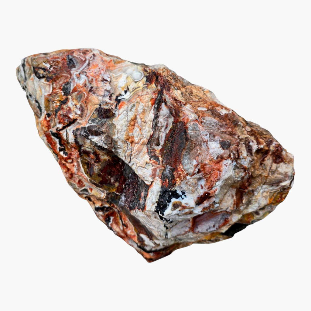 Crazy Lace Agate is one of the most visually dynamic and collectible agates available, found in the arid desert regions of northern Mexico. This vibrant material is famous for its bold lace patterns, swirling bands, and bright, vivid colors, making it a favorite among lapidary artists and agate collectors worldwide.