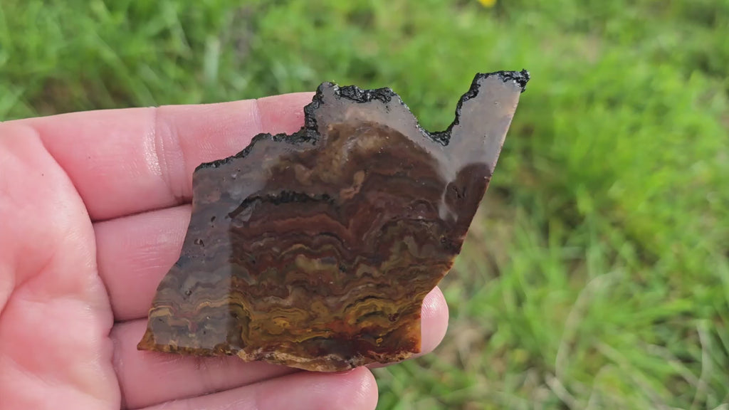 Mystery Lace Agate Slab – Dark Volcanic Cloud Patterns – Vintage 1930s-1940s Collection