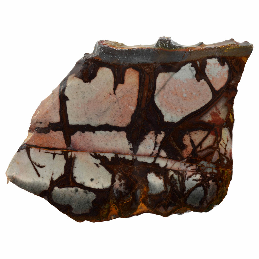 Outback Jasper is a jasper from Western Australia that was a seam jasper located within banded chert layers. It is impressive picturesque jasper, often resembling dendritic jasper with tree-like patterns. It can have a color mix including green, black, brown, white, and even pink creating varied scenes. It typically takes a decent polish and is known to work into distinctive cabochons. The miners recently indicated this material has been exhausted and will likely never be mined again, making existing pieces increasingly valuable.