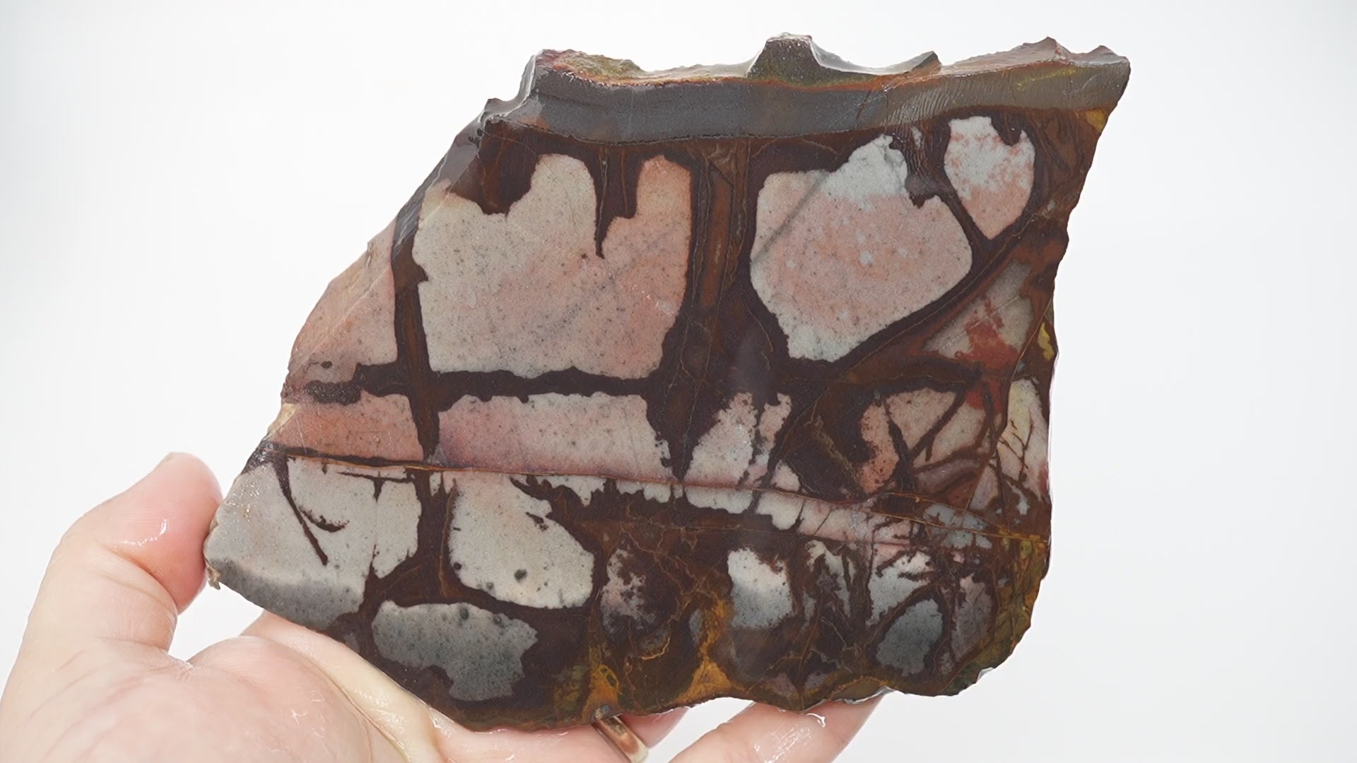 This larger slab of Outback Jasper showcases a fantastic sunset pattern with warm tones that make this Western Australian material so sought after. With high cabbing potential and a solid, workable composition, this slab offers plenty of room for multiple cabochon cuts. The miners recently indicated this material has been exhausted and will likely never be mined again, making every remaining piece increasingly valuable.