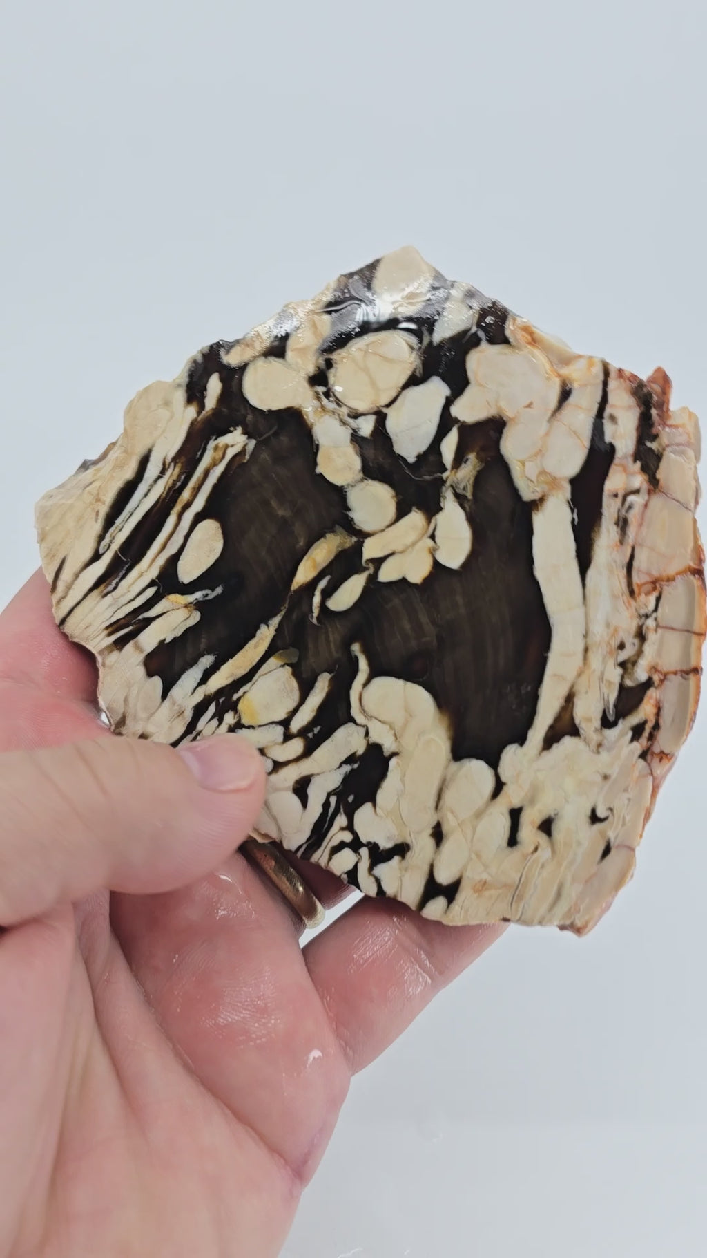 Peanut Wood Petrified Wood Slab – Classic Pattern with Woodgrain – Riddled with Larvae Tunnels