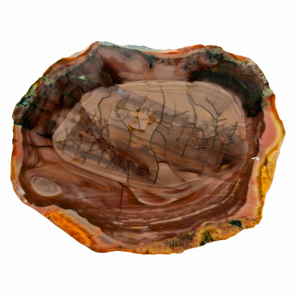 Royal Imperial Jasper is Imperial Jasper containing distinctive egg-like orbs that elevate it above standard Imperial material. It's one of the five fine old stock jaspers, along with Bruneau, Morrisonite, Willow Creek, and Blue Mountain. The material comes in numerous colors and patterns from near San Cristobal, Mexico. The egg orbs create additional visual interest and command premium prices among collectors.
