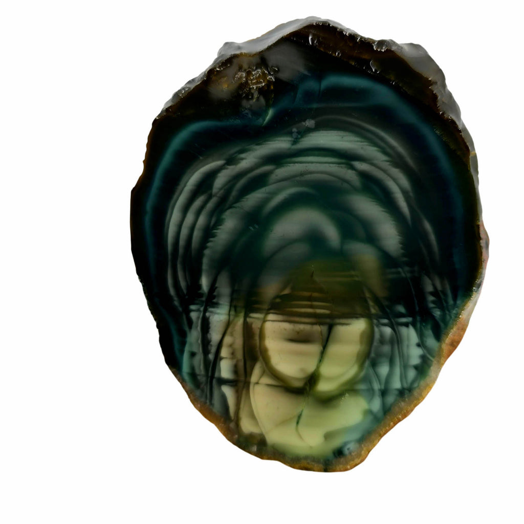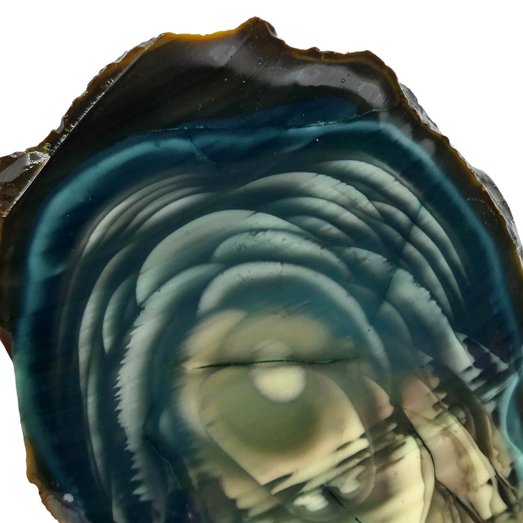 This absolutely stunning slab features captivating green and blue colors that create an aquatic scene reminiscent of underwater landscapes. The colors truly pop when wet or under bright light, creating a mesmerizing display that's hard to look away from. The intricate details become more fascinating the closer and longer you examine them. This represents one of the finest Royal Imperial Jasper specimens available – pure eye candy for collectors.