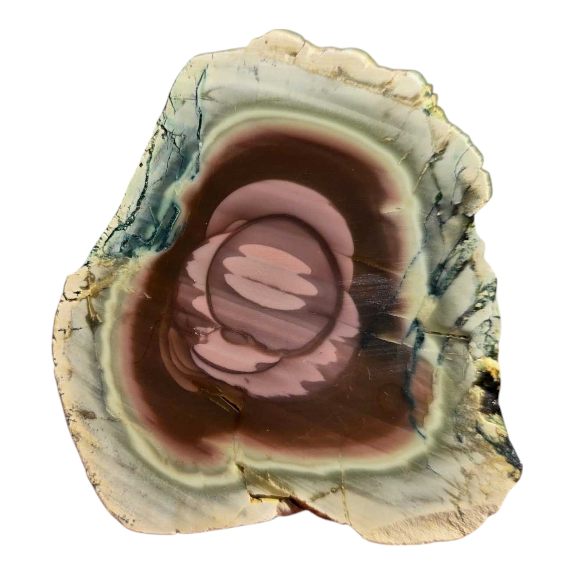 This piece shows off the signature orbicular structure that defines Royal Imperial Jasper and makes it a favorite among high-end cabbers and collectors alike.