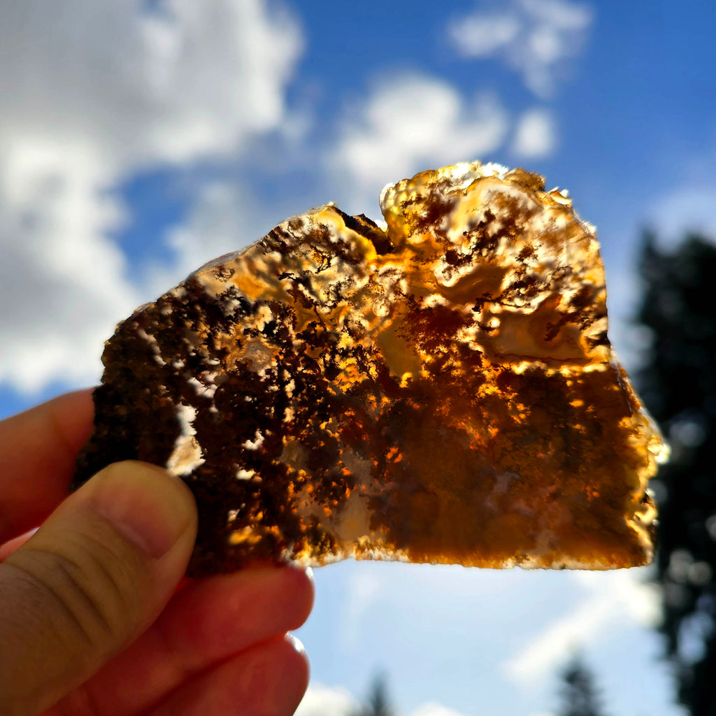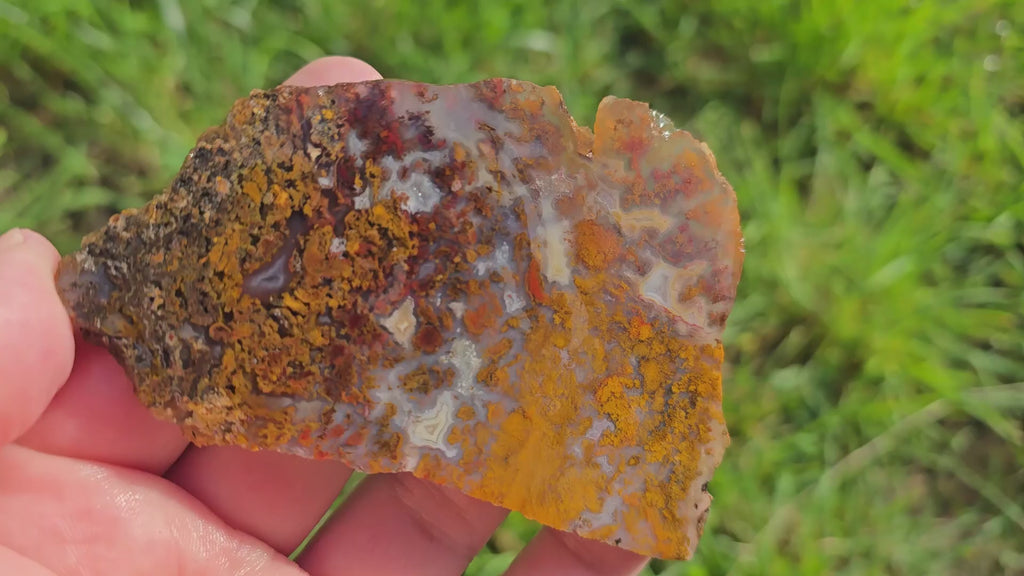 The orange and red moss shows exceptional detail and contrast. As a newer material just hitting the market, this offers collectors the chance to acquire quality Mexican moss agate early.
