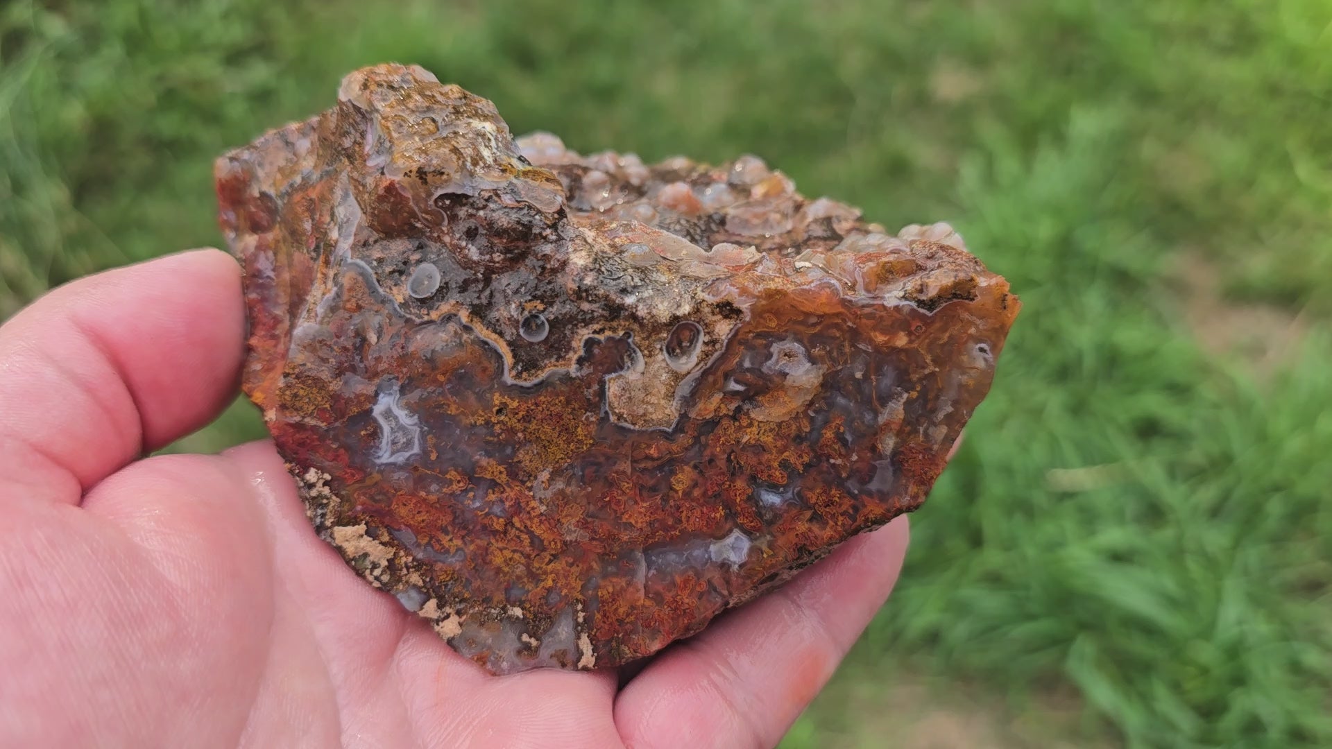 Unique Characteristics: Orange moss inclusions, tube botryoidal formations, excellent cabbing or display potential
