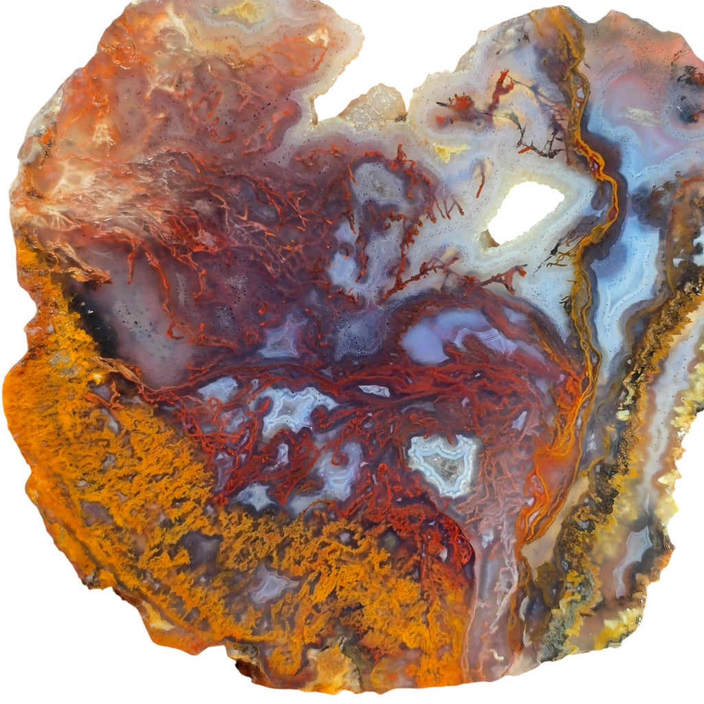 San Carlos Agate Slab – Red, Orange, and Purple Moss – Drusy Sparkle Pockets