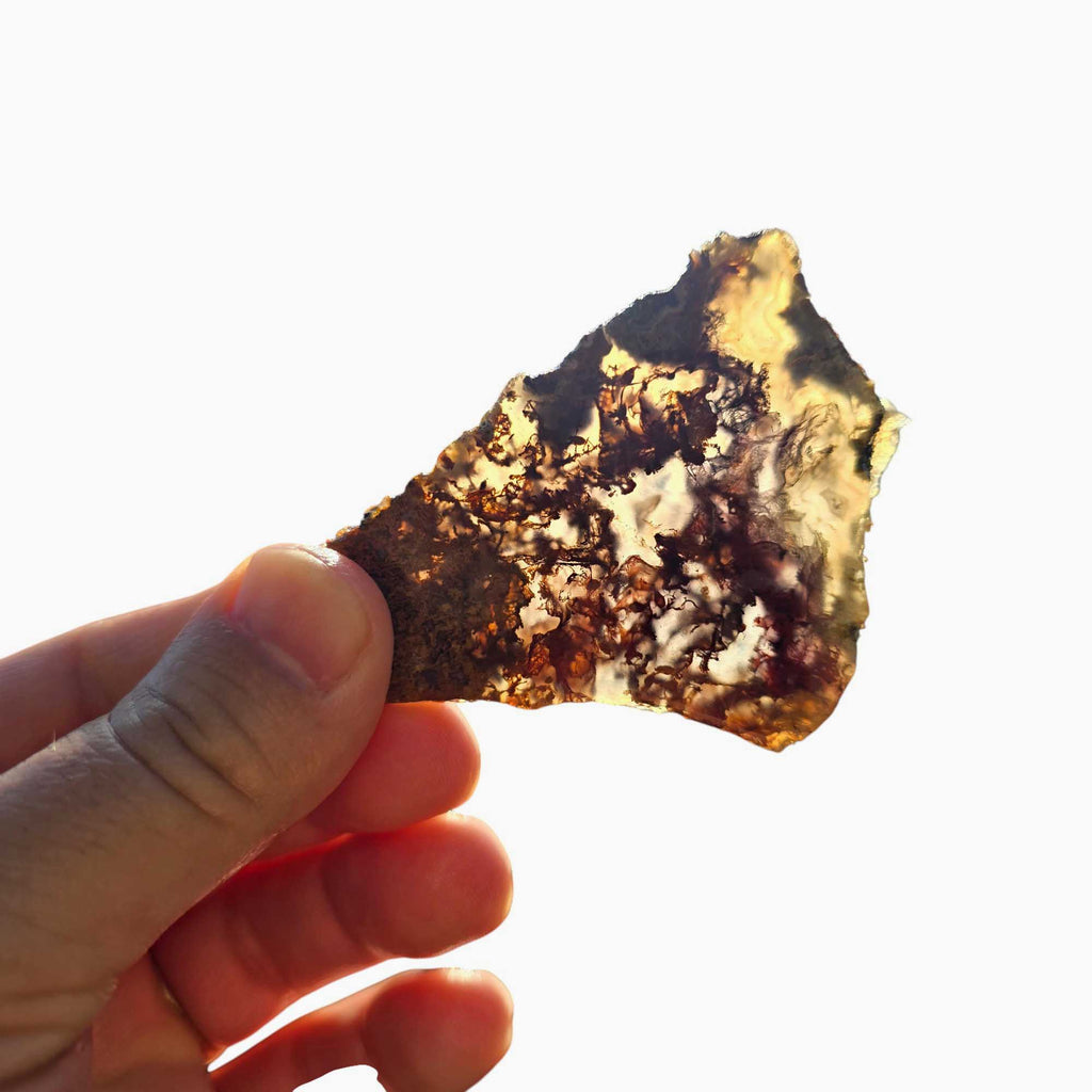San Carlos Agate is a stunning moss agate near San Carlos, Mexico. This is a somewhat newer discovery, with gorgeous rough just now hitting the market. So far, with our cutting, we have been immensely enjoying this stone, as it has some well-defined moss with gorgeous coloration. It also appears it will take a nice polish.