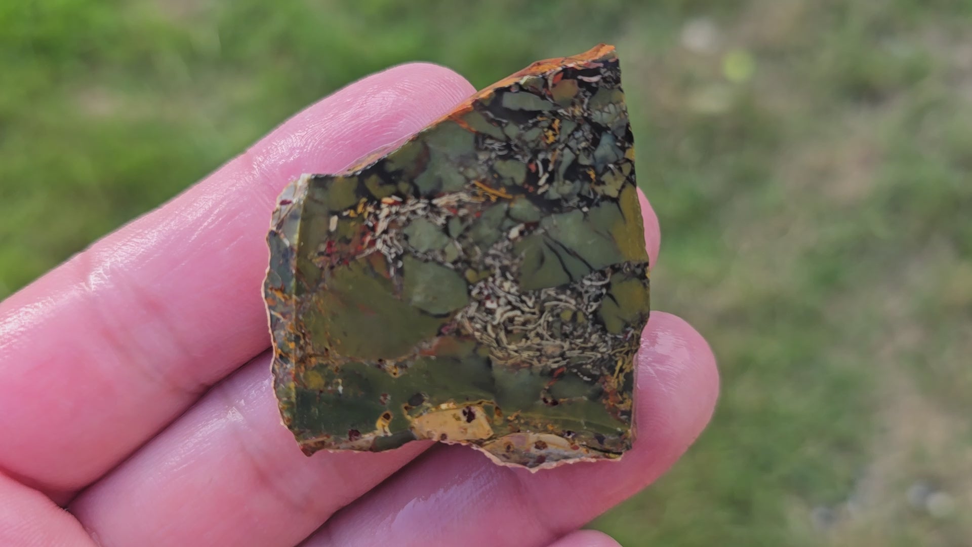 Whisky Creek Brecciated Jasper Slab – Green White Flecks – Owyhee Idaho Premium
