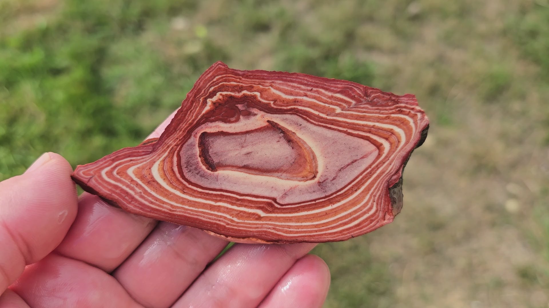 Wonderstone Slab – Bright Red Bullseye Pattern – Classic Wavy Formation