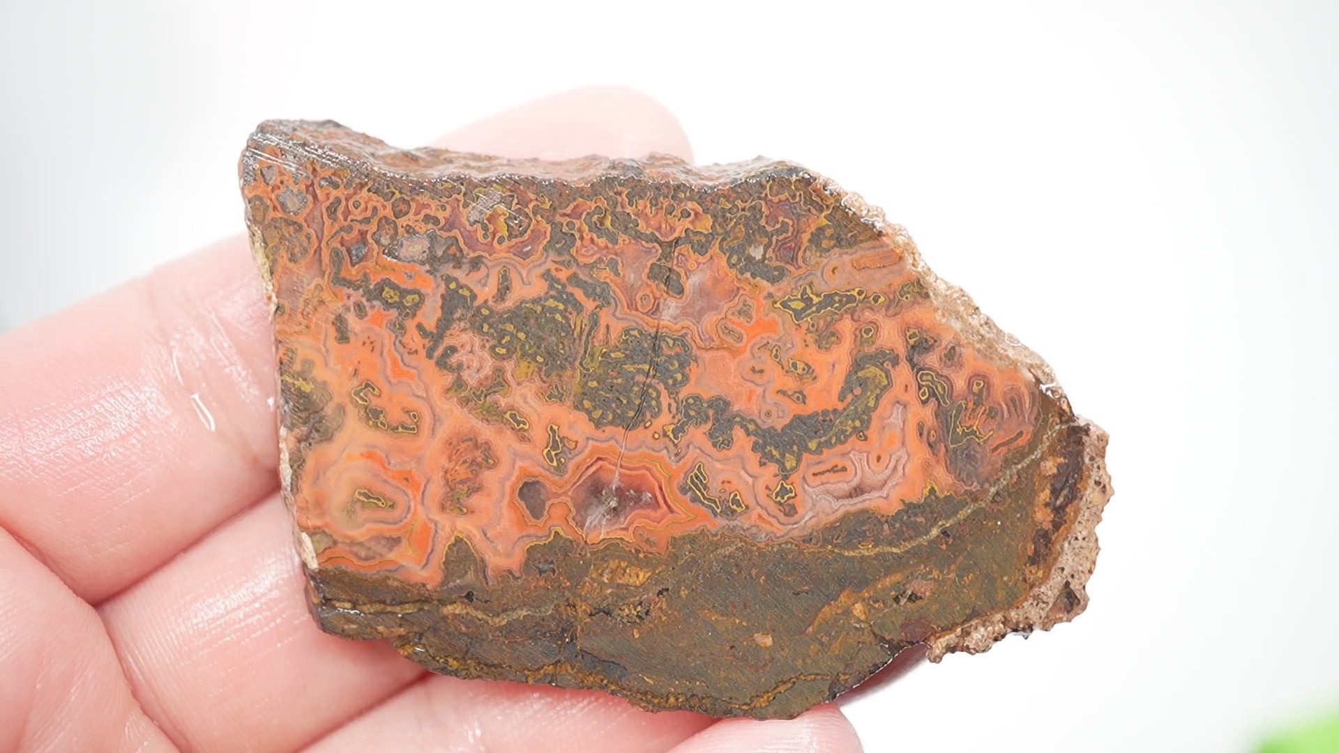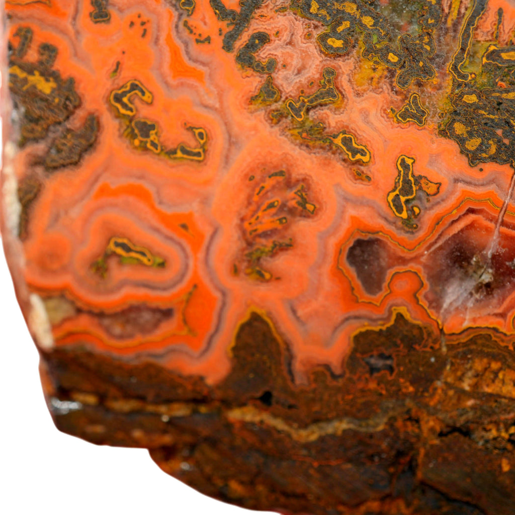 WHAT MAKES IT SPECIAL The red lace patterning around distinct hematite flower formations gives this piece a dramatic, organic appearance. Despite the hairline fracture, this slab offers versatile cutting options for creative lapidary work.